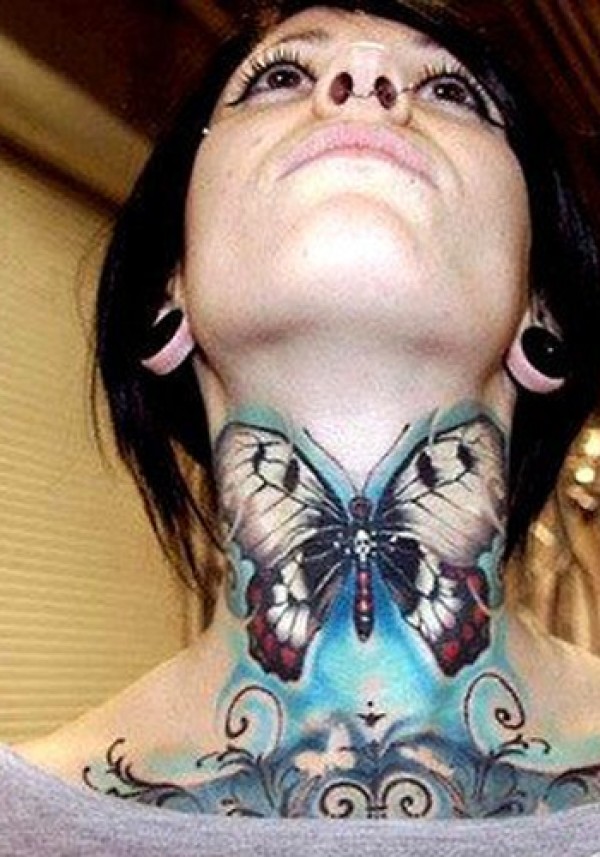 脖子处时尚蝴蝶纹_蝴蝶纹身图案大全_纹身图吧
