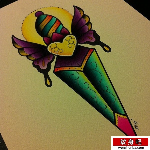 炫彩蝴蝶长剑纹身图案_蝴蝶纹身图案大全_纹身图吧