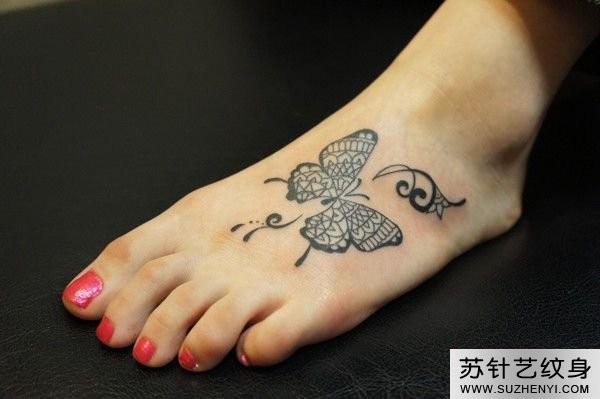 脚背蝴蝶时尚刺青_蝴蝶纹身图案大全_纹身图吧