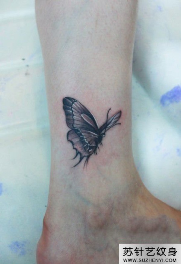 脚踝彩色蝴蝶纹身_蝴蝶纹身图案大全_纹身图吧