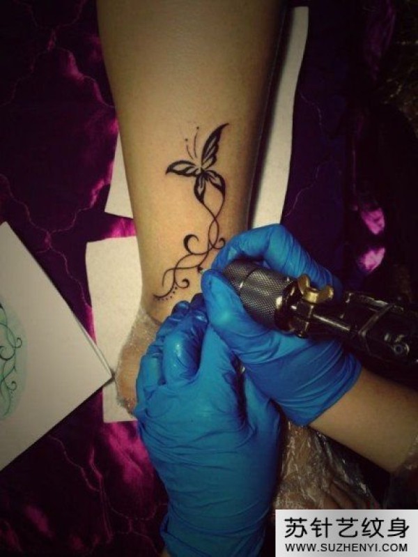 脚踝蝴蝶纹身现场_蝴蝶纹身图案大全_纹身图吧