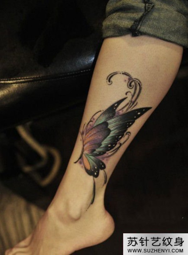 花蝴蝶小腿纹身_蝴蝶纹身图案大全_纹身图吧