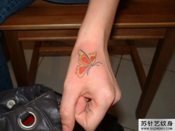 手背彩色蝴蝶纹身_蝴蝶纹身图案大全_纹身图吧