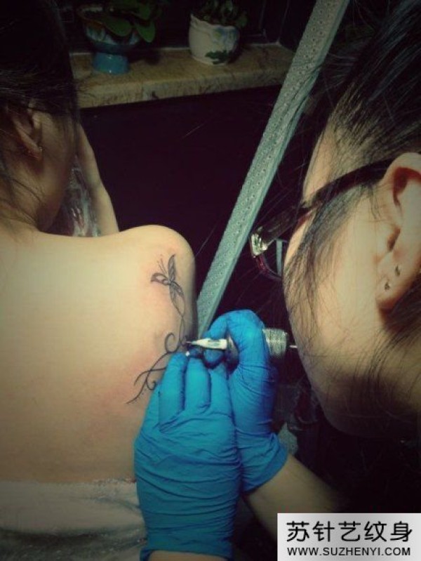 女生侧肩蝴蝶纹身_蝴蝶纹身图案大全_纹身图吧