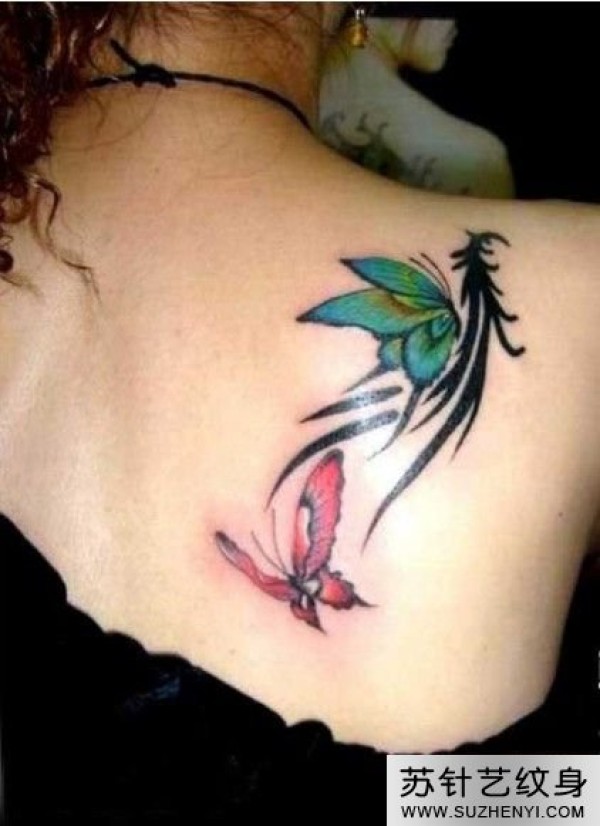 后肩花蝴蝶纹身_蝴蝶纹身图案大全_纹身图吧