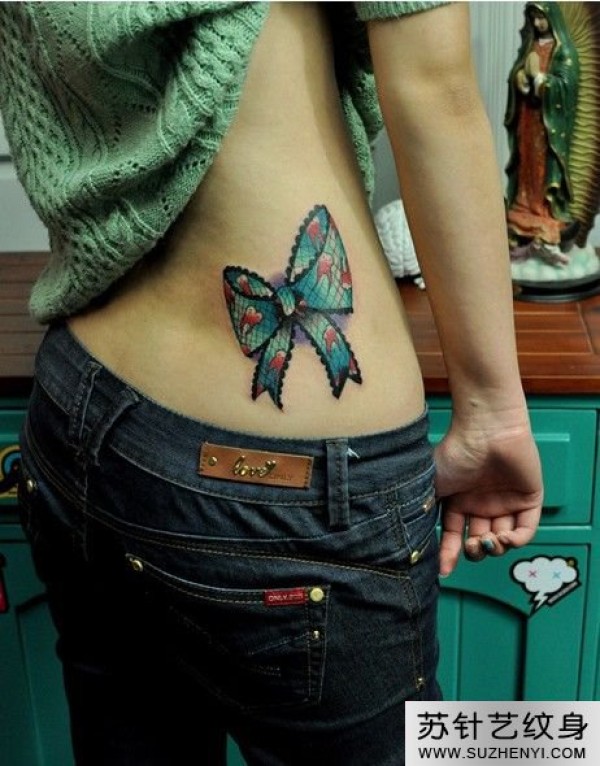 腰部彩色蝴蝶纹身_蝴蝶纹身图案大全_纹身图吧