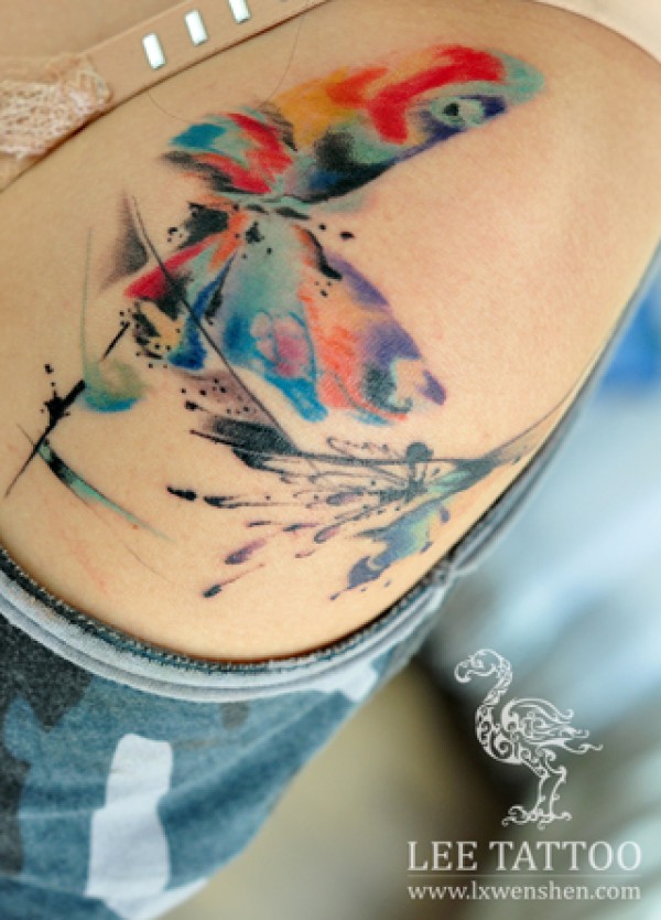 腰部彩色蝴蝶纹身_蝴蝶纹身图案大全_纹身图吧
