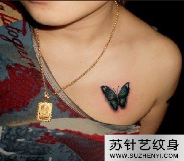 胸前蝴蝶时尚纹身_蝴蝶纹身图案大全_纹身图吧