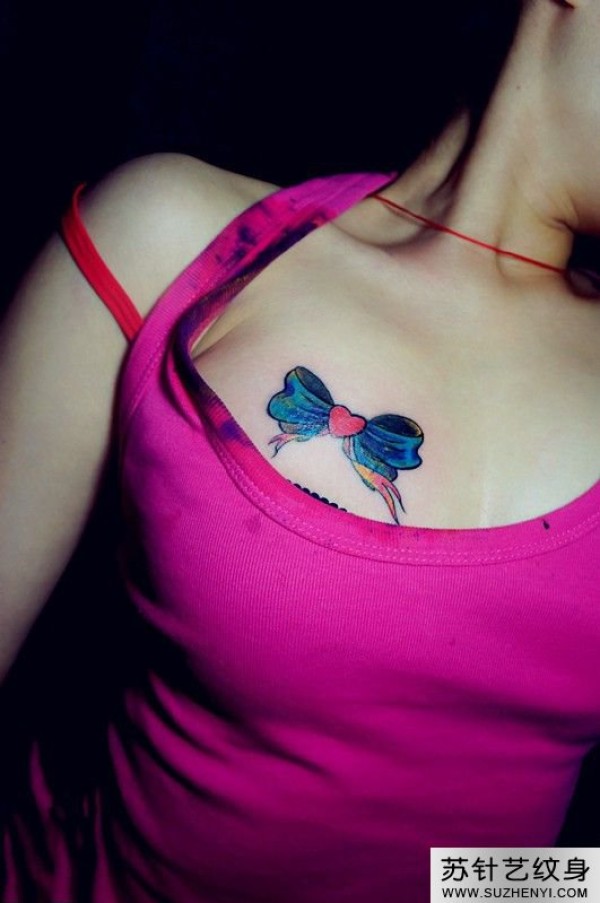 胸前最新蝴蝶结纹身_蝴蝶纹身图案大全_纹身图吧