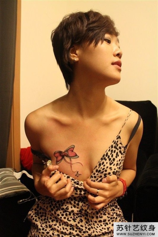胸部性感蝴蝶结纹身_蝴蝶纹身图案大全_纹身图吧