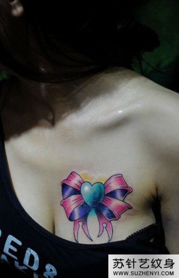 心蝴蝶结胸部纹身_蝴蝶纹身图案大全_纹身图吧