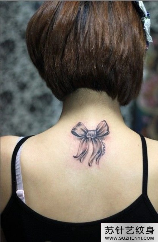 后颈蝴蝶结纹身图_蝴蝶纹身图案大全_纹身图吧