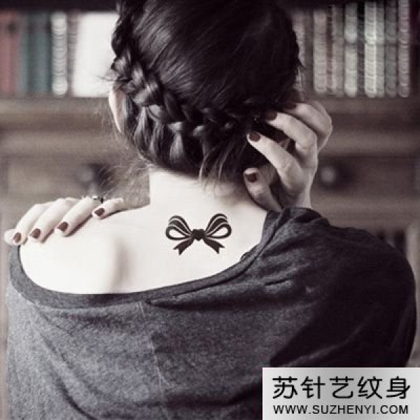 脖子可爱蝴蝶结纹身_蝴蝶纹身图案大全_纹身图吧