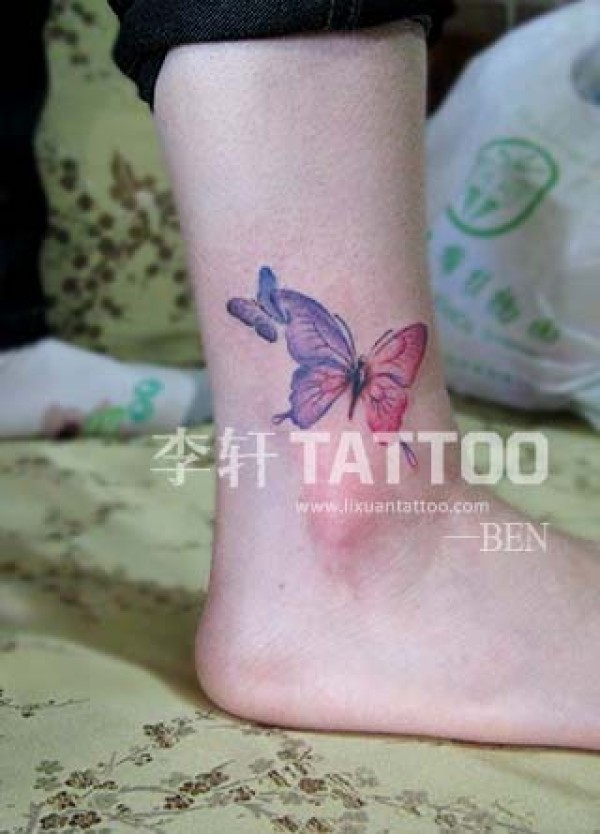 腿部蝴蝶纹身_蝴蝶纹身图案大全_纹身图吧