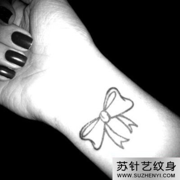 女生手臂唯美黑白蝴蝶结纹身_蝴蝶纹身图案大全_纹身图吧