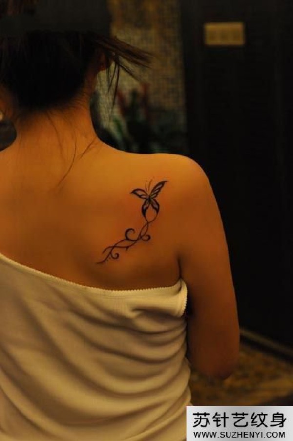 女生后背唯美简易的蝴蝶纹身_蝴蝶纹身图案大全_纹身图吧