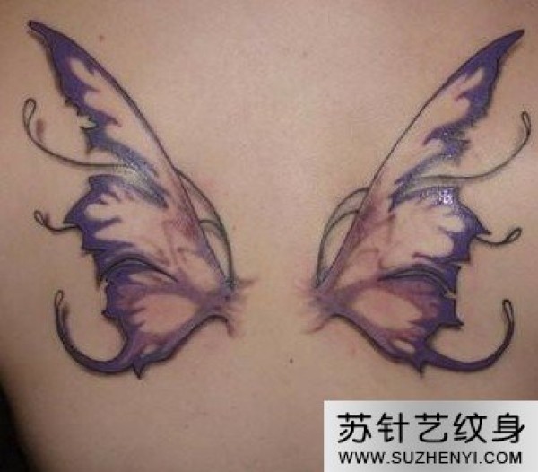 紫色简易的蝴蝶翅膀纹身_蝴蝶纹身图案大全_纹身图吧