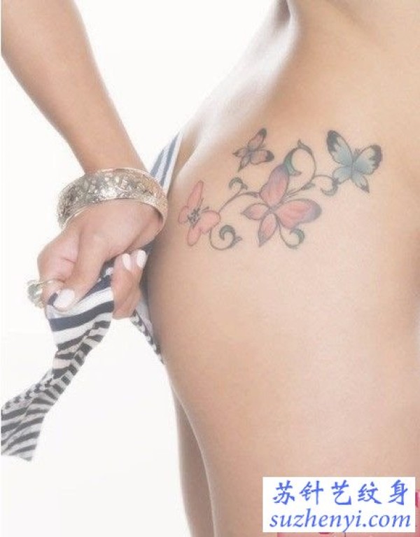 腰部彩色蝴蝶纹身_蝴蝶纹身图案大全_纹身图吧