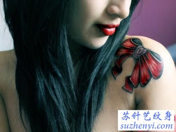 美女肩部蝴蝶结纹身刺青_蝴蝶纹身图案大全_纹身图吧