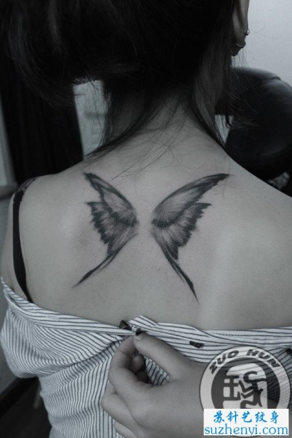 女生背部蝴蝶翅膀纹身图案_蝴蝶纹身图案大全_纹身图吧