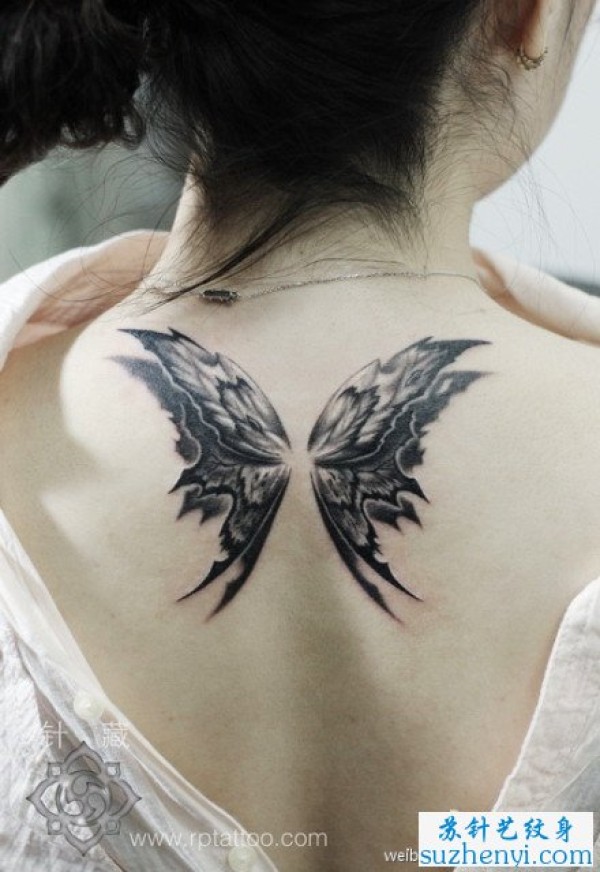 流行精美的蝴蝶翅膀纹身图案_蝴蝶纹身图案大全_纹身图吧