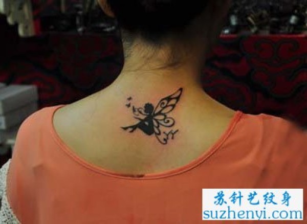 颈部图腾蝴蝶精灵纹身_蝴蝶纹身图案大全_纹身图吧