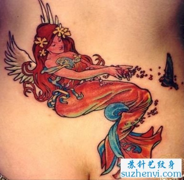 美女腹部蝴蝶天使纹身图案_蝴蝶纹身图案大全_纹身图吧
