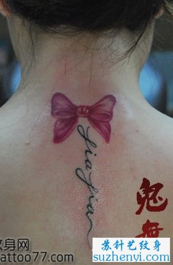 颈部蝴蝶结字母纹身_蝴蝶纹身图案大全_纹身图吧