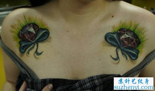 肩膀处蝴蝶结与钻石纹身图案_蝴蝶纹身图案大全_纹身图吧
