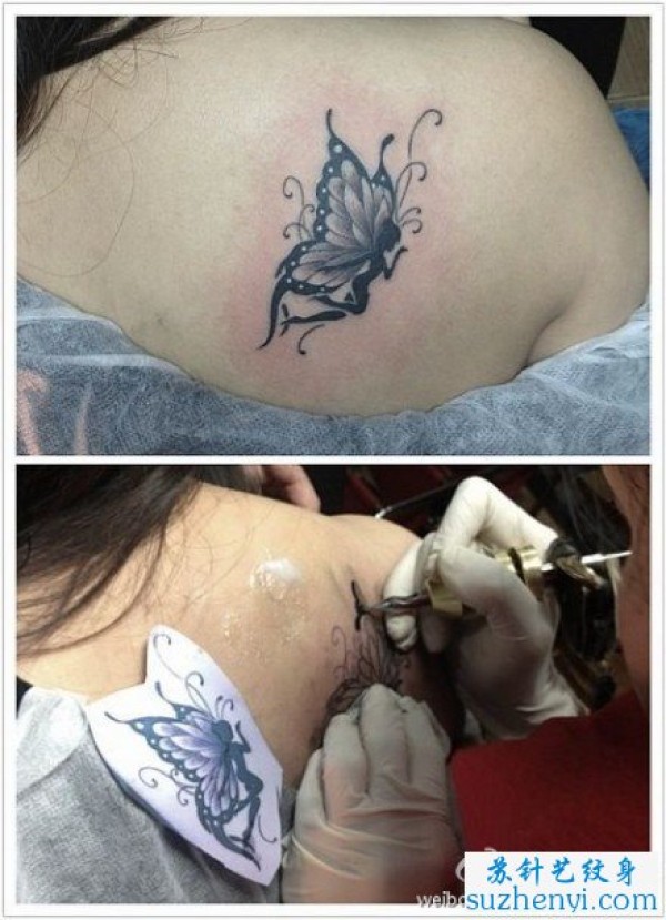 肩背唯美的蝴蝶纹身图案_蝴蝶纹身图案大全_纹身图吧