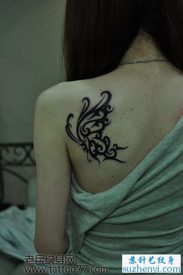 美女肩部图腾蝴蝶纹身_蝴蝶纹身图案大全_纹身图吧