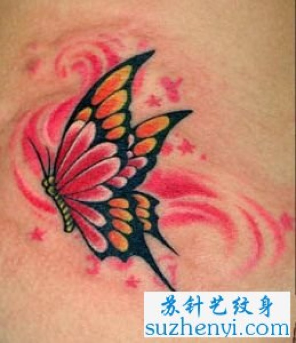 腰部彩色蝴蝶纹身_蝴蝶纹身图案大全_纹身图吧