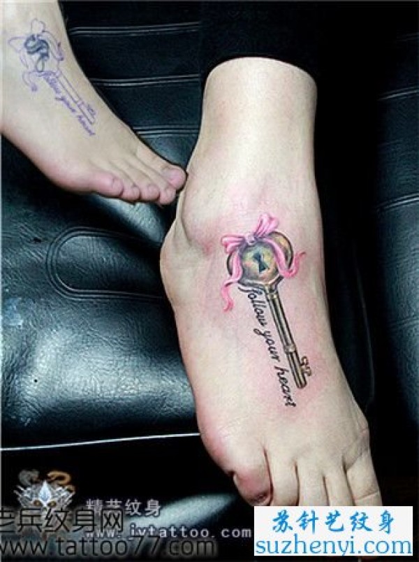 脚部蝴蝶结钥匙纹身_蝴蝶纹身图案大全_纹身图吧