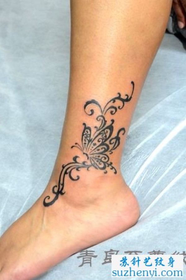 脚踝图腾蝴蝶纹身_蝴蝶纹身图案大全_纹身图吧