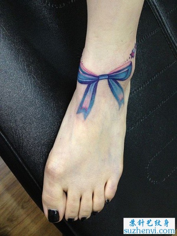 脚部彩色蝴蝶结纹身图案_蝴蝶纹身图案大全_纹身图吧