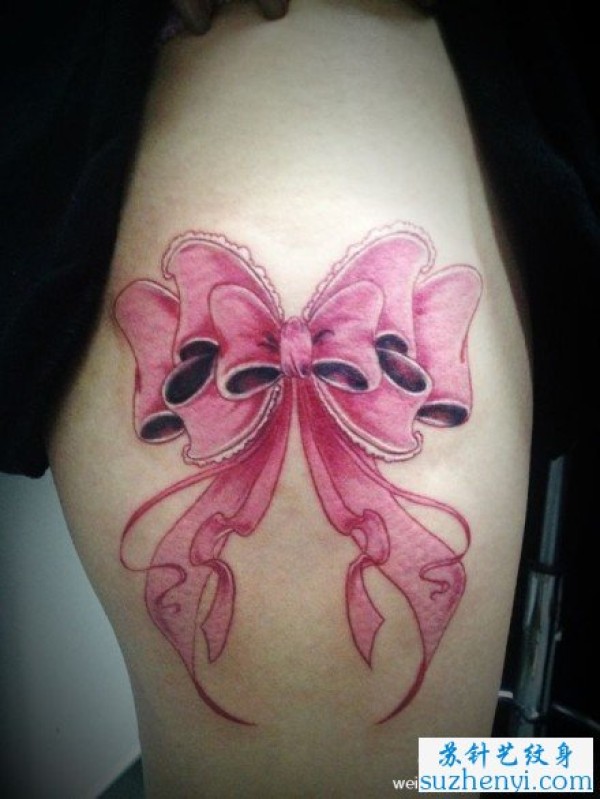 女生腿部精美好看的蝴蝶结纹身_蝴蝶纹身图案大全_纹身图吧
