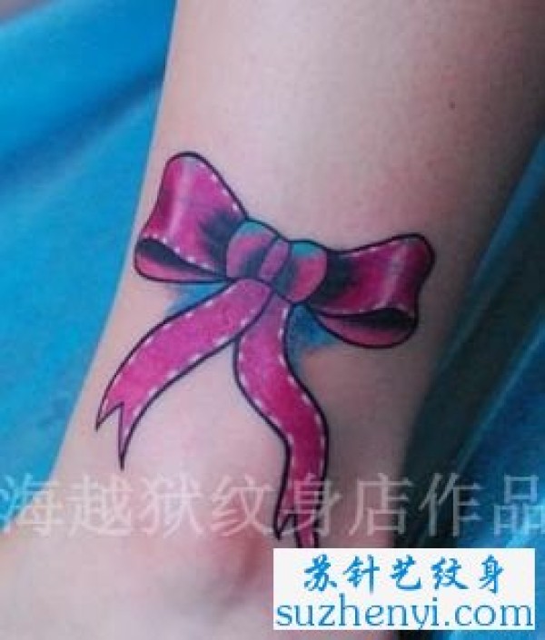 脚踝彩色蝴蝶结纹身_蝴蝶纹身图案大全_纹身图吧