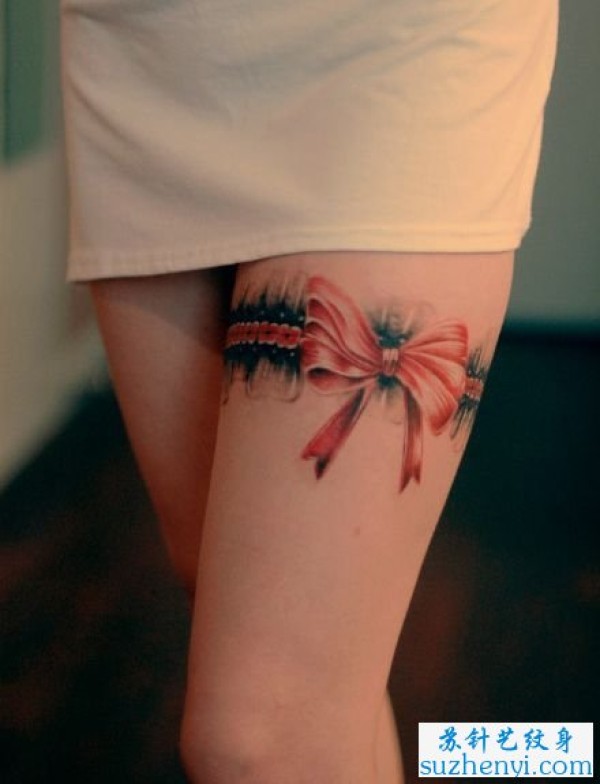 蝴蝶结与蕾丝纹身_蝴蝶纹身图案大全_纹身图吧