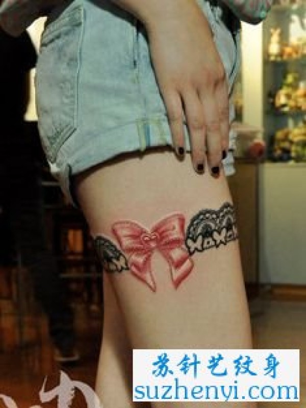 腿部蝴蝶结蕾丝纹身_蝴蝶纹身图案大全_纹身图吧
