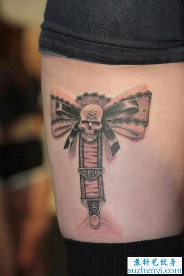 蝴蝶结蕾丝纹身_蝴蝶纹身图案大全_纹身图吧