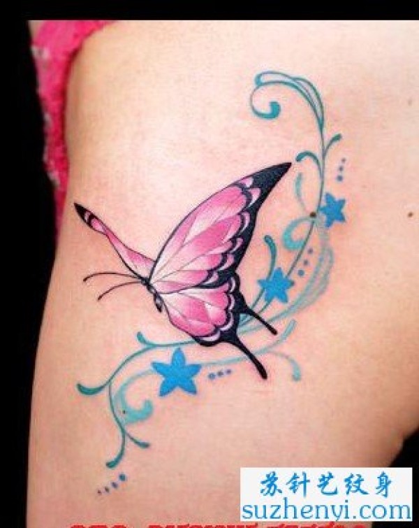 大腿蝴蝶星星纹身_蝴蝶纹身图案大全_纹身图吧