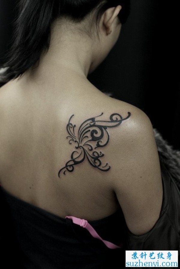 肩背好看的图腾蝴蝶纹身_蝴蝶纹身图案大全_纹身图吧