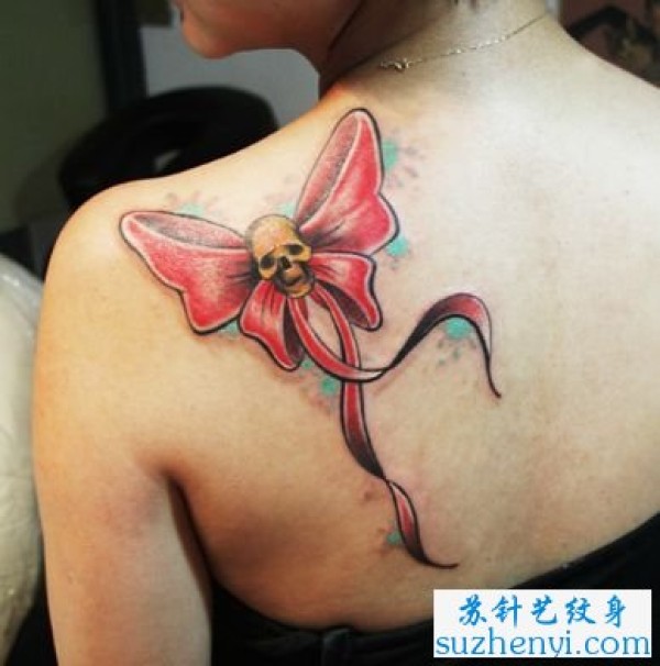 肩背彩色蝴蝶结纹身_蝴蝶纹身图案大全_纹身图吧
