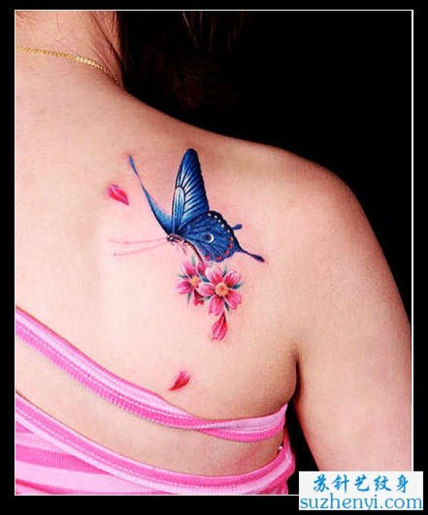 肩胛部蝴蝶花纹身_蝴蝶纹身图案大全_纹身图吧
