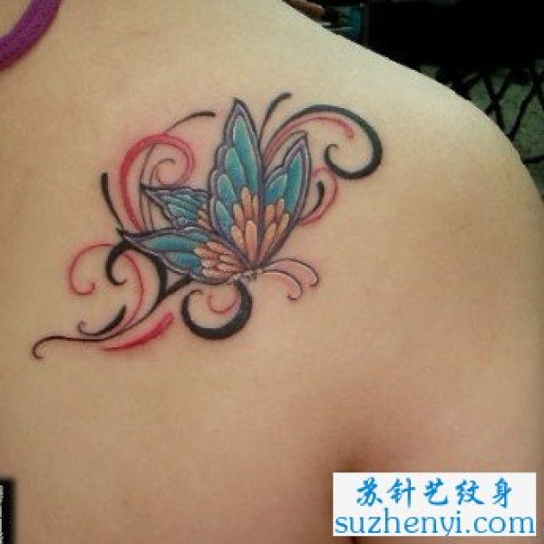 肩部彩色蝴蝶纹身_蝴蝶纹身图案大全_纹身图吧