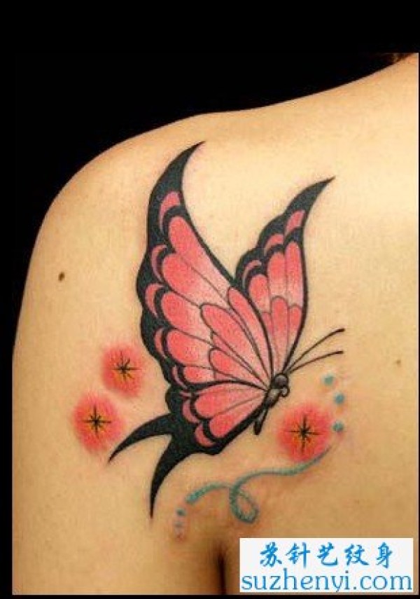 后肩背蝴蝶纹身_蝴蝶纹身图案大全_纹身图吧