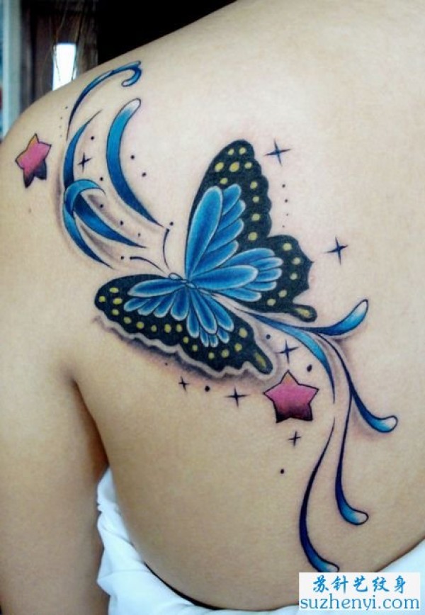 肩部漂亮的蝴蝶纹身_蝴蝶纹身图案大全_纹身图吧