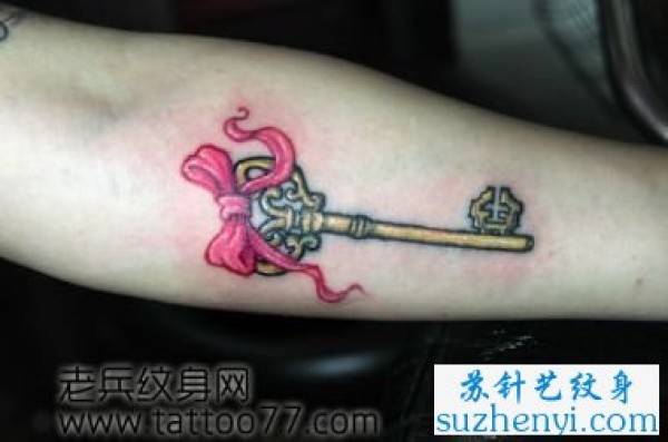 手臂彩色钥匙蝴蝶结纹身_蝴蝶纹身图案大全_纹身图吧