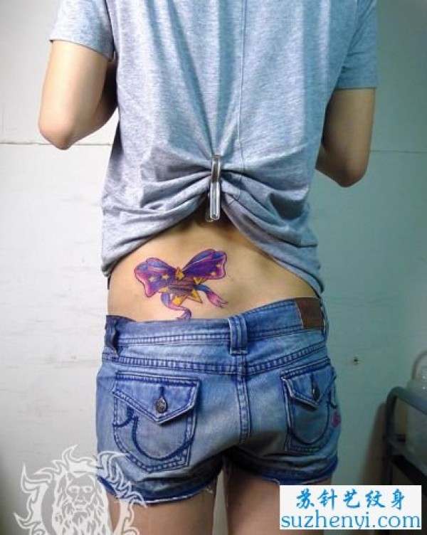 腰部彩色蝴蝶结纹身_蝴蝶纹身图案大全_纹身图吧