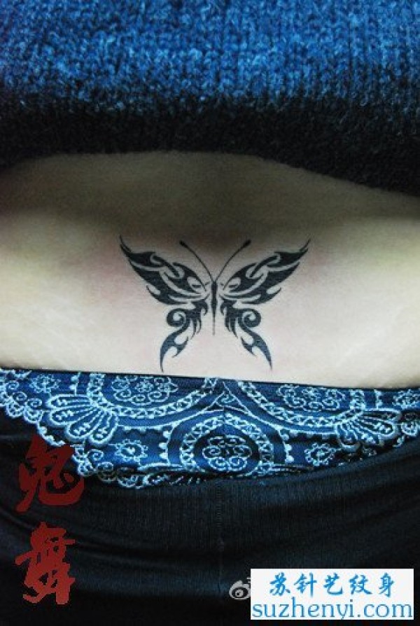 女生腰部图腾蝴蝶纹身_蝴蝶纹身图案大全_纹身图吧